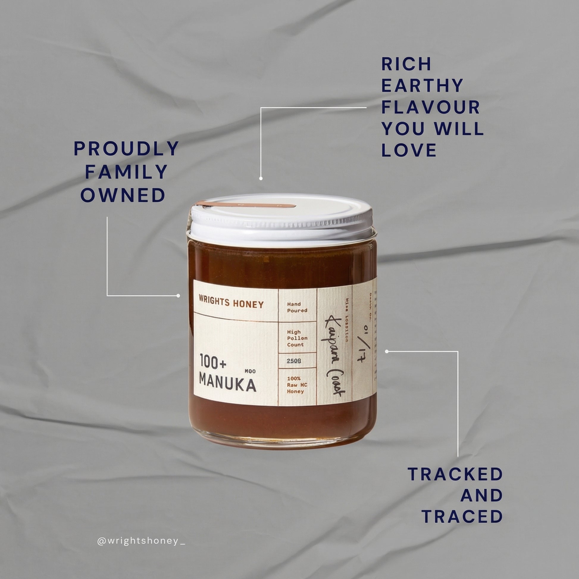 Wrights Honey tastes alive. Rich caramel warmth. Earthy, woody depth. A smooth butterscotch finish. Complex, real, and completely unforgettable.